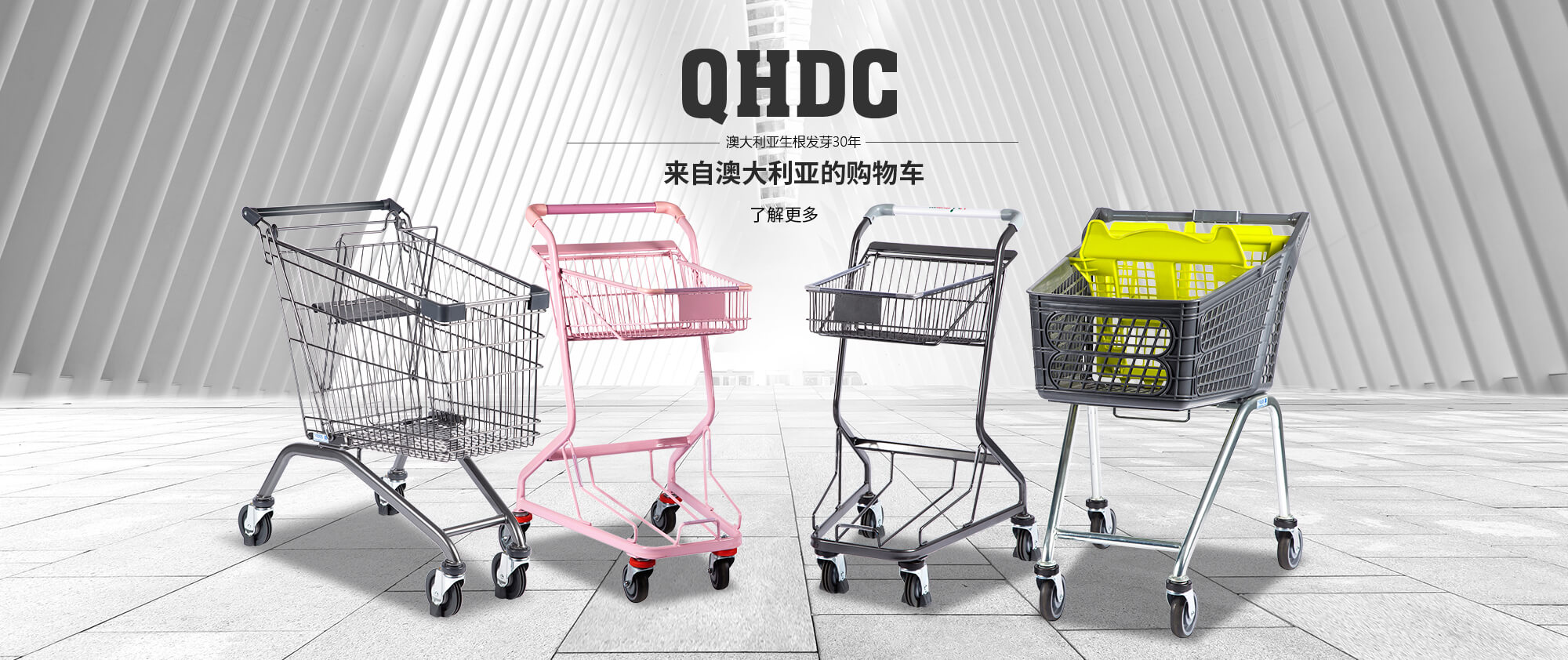 我們公司在澳大利亞生根發芽30年,現如今在澳洲購物車市場占有率達到90%以上。QHDC公司生產的購物車,在澳洲就是為高端需求界定了標準。